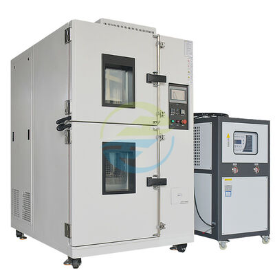 急速温度サイクル用の高温均一性を備えた二ゾーン移動式熱衝撃試験槽